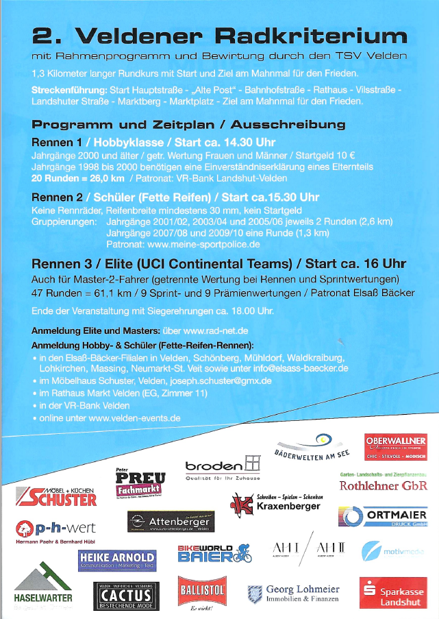 des tollen Radrennens 2016 in Velden /Vils!!!